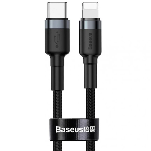 Кабель Baseus Cafule Type-C to Lightning PD 18W 1M Чорний/Сірий (CATLKLF-G1)