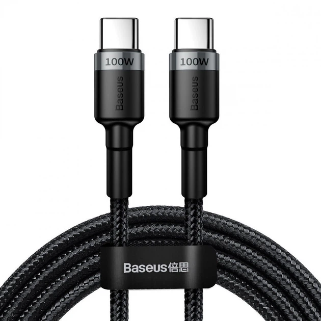 Кабель Baseus Cafule Type-C to Type-C 2м PD2.0 100Вт 5A 20В Black/Grey (CATKLF-ALG1)