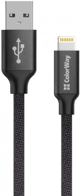 Кабель USB-Lightning 1м ColorWay, 2.1А, чорний (CW-CBUL004-BK)
