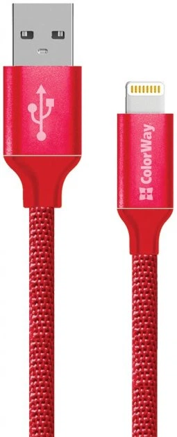Кабель USB-Lightning 1м ColorWay, 2.1А, червоний (CW-CBUL004-RD)