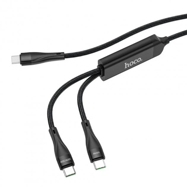 USB кабель HOCO U102 5A 100W 2in1 Type-C to Type-C/Type-C 1.5m, Black