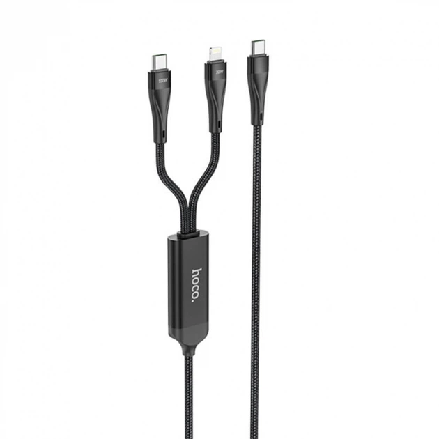 USB кабель HOCO U102 5A 100W 2in1 Type-C to Type-C/Lightning 1.5m, Black