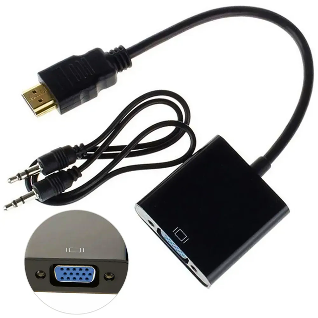 Перехідник перетворювач сигналу HDMI на VGA + аудіо вихід, 1080р / Конвертер HDMI на VGA (L)