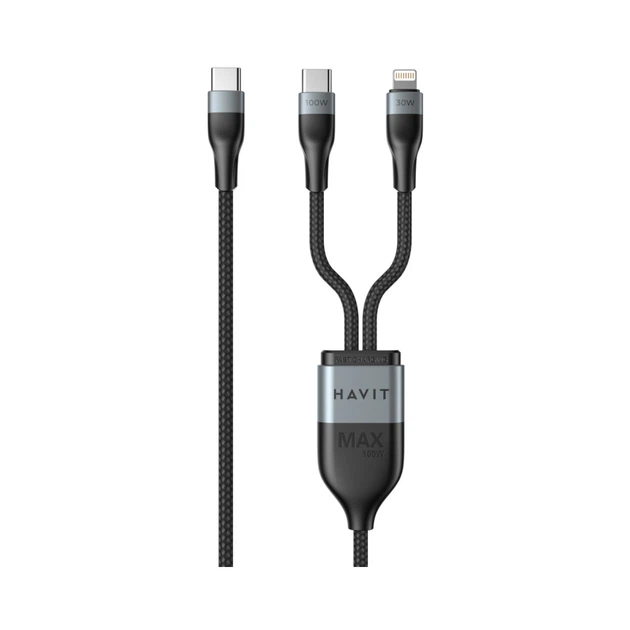 Кабель HAVIT HV-CB6326 USB-C - USB-C + Lightning 1.2м (PD100W)