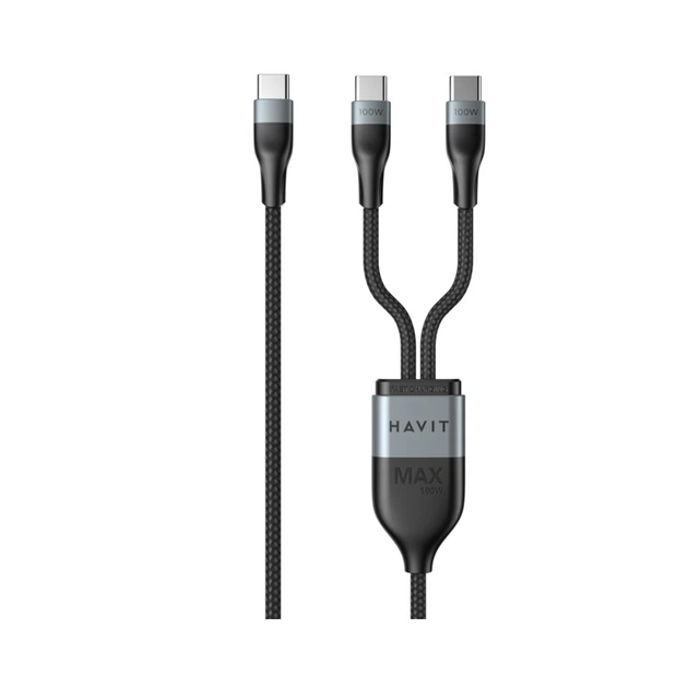 Кабель Havit HV-CB6325 USB Type-C to 2xUSB Type-C PD100W 5A 1.2м