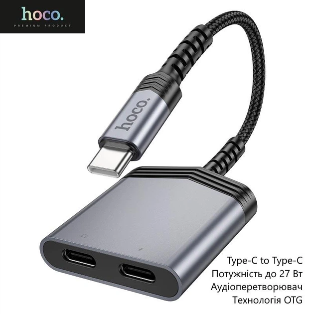 Перехідник HOCO LS40 Type-C to Dual Type-C Digital Audio Converter |швидка зарядка до 27 Вт і прослуховування музики одночас