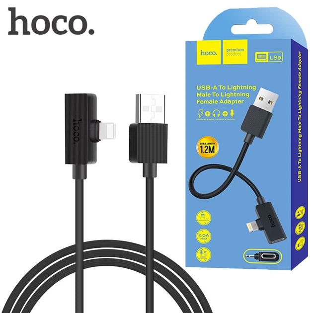 Перехідник Hoco LS9 Brilliant 2in1 Lightning 1.2м чорний