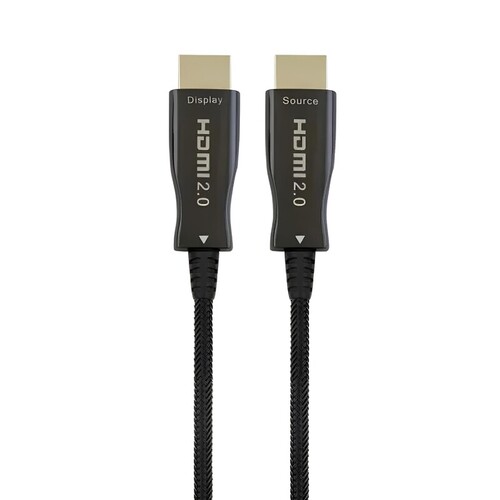 Високошвидкісний кабель HDMI AOC преміум-класу з Ethernet. Підтримує роздільну здатність HDMI 2.0 4K UHD з частотою 60 Гц. Волоконно-оптичний кабель має високу завадостійкість EMI та RFI. Металеві конектори преміум-класу. Позолочені конектори для ідеальної якості зображення. Сумісний з усіма пристроями, що підтримують HDMI.
