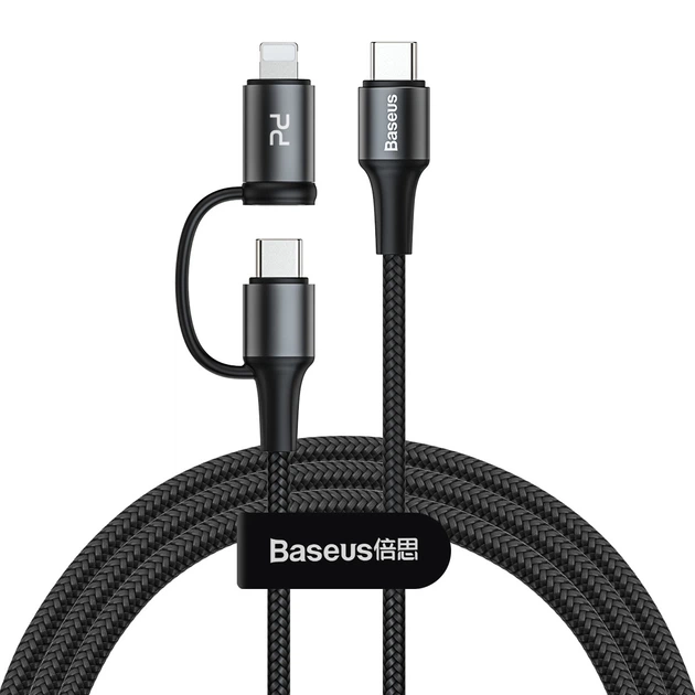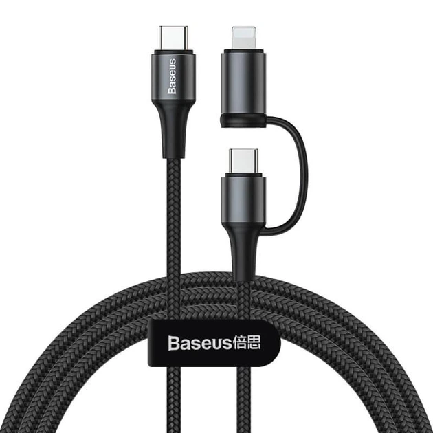 Кабель BASEUS Combo twins 2 in 1 cable Type-C to Type-C/Lightning |1M, 60W (20V 3A) + 18W (9V 2A)|