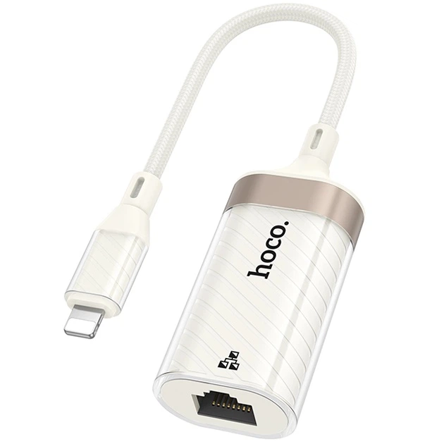 Перехідник Hoco UA41A (Lightning to RJ45) iP to RJ45 мережний адаптер для інтернету 100 mbps Бежевий