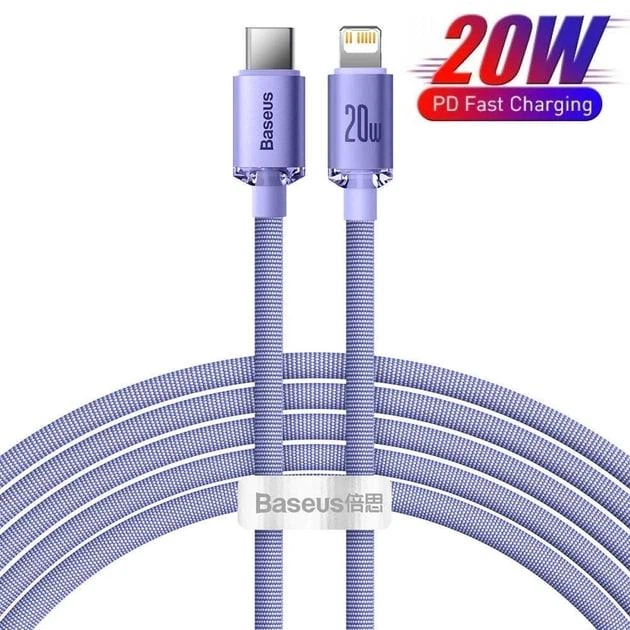 Кабель Baseus Crystal Shine Series Fast Charging Data Cable Type-C to Lightning PD 20W 1.2м (CAJY000205) Purple