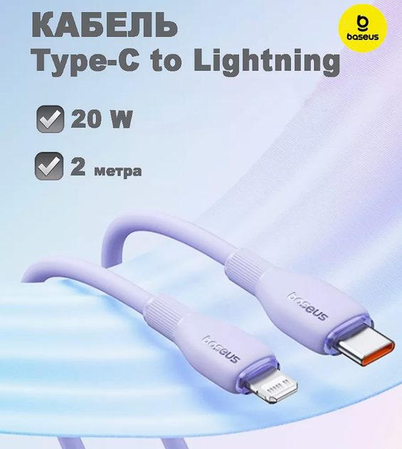 Кабель для Apple iPhone Baseus Pudding Series USB Type-C to Lightning iP PD 20 W 2 м дріт швидкий заряджання для епл iPod iP