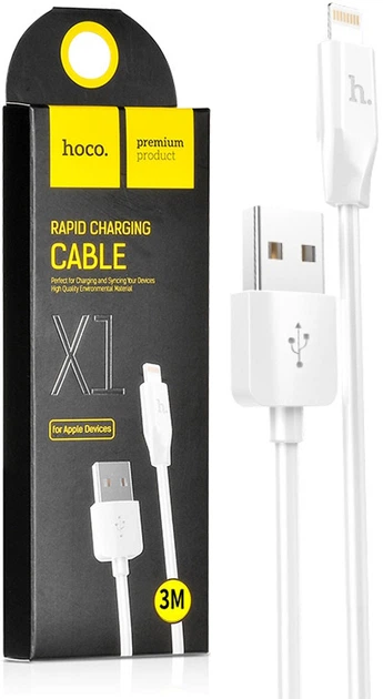 Інтерфейсний кабель Hoco X1 2.4A Lightning (iPhone, iPad) 3m White (23599)