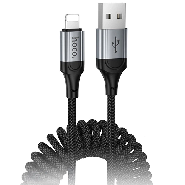 Кабель заряджання Hoco X121 Nuevo Пружина (2.4А) (1.5M) USB to Lightning для iOS пристроїв iPhone Чорний
