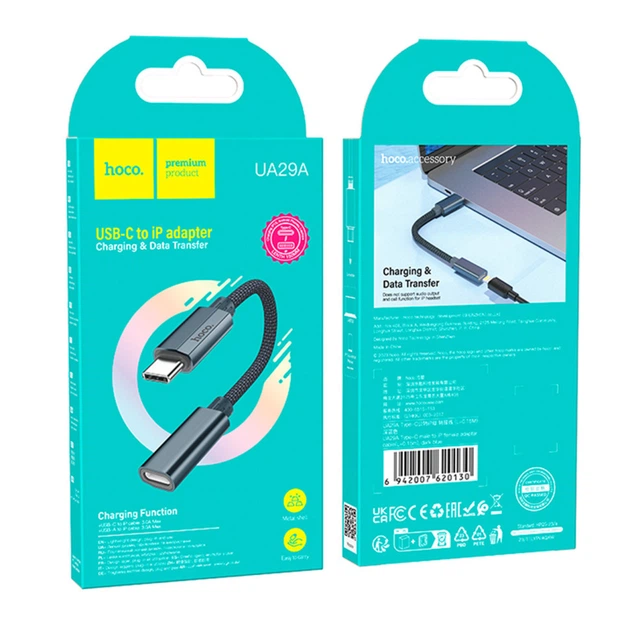Перехідник Hoco UA29A Type-C male to iP female, 3А, 0.15m, Темно-синій