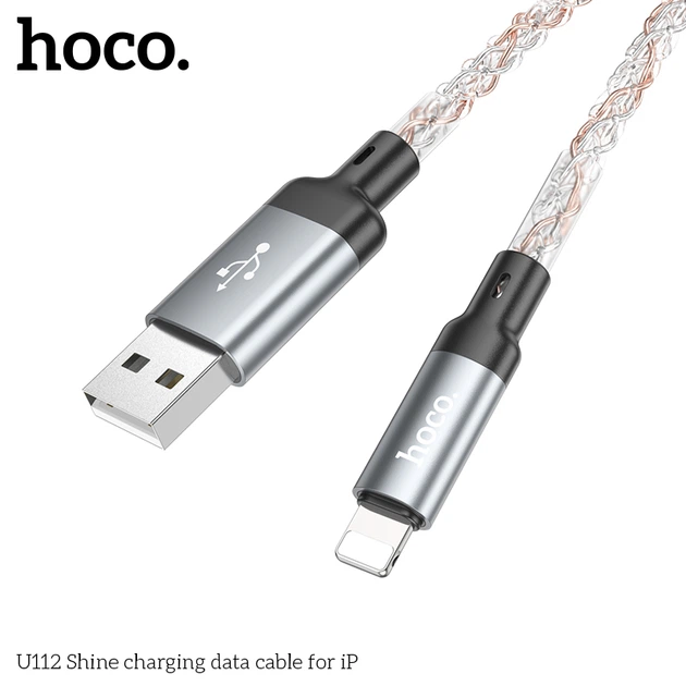 Кабель заряджання Hoco U112 Shine 2.4А 1М LED Charging Data Cable for USB to Lightning для iOS пристроїв iPhone iPad iPod Сі