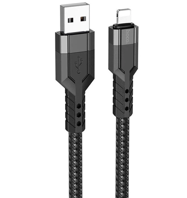 Кабель для заряджання Hoco U110 передача даних USB на Lightning, 1.2m конектори з алюмінієвого сплаву, 2.4A Black КОД:39765