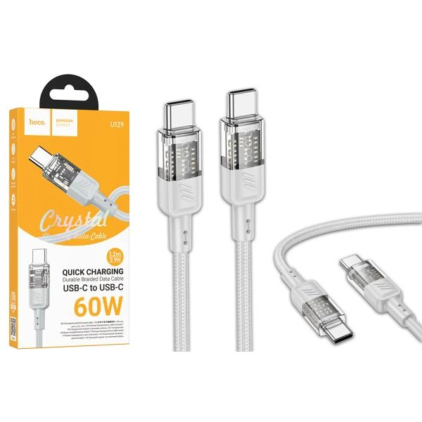 Дата кабель Hoco U129 Spirit Transparent Type-C to Type-C 60W (1.2m) Gray - 000000710761