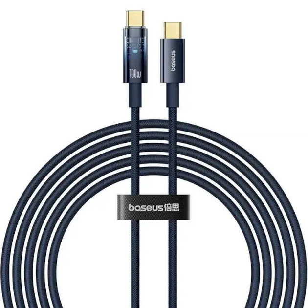 Кабель Baseus Explorer Charging Cable USB-C до USB-C 100W з Auto Shutdown 1m Deepsea Blue (P10319704321-00)