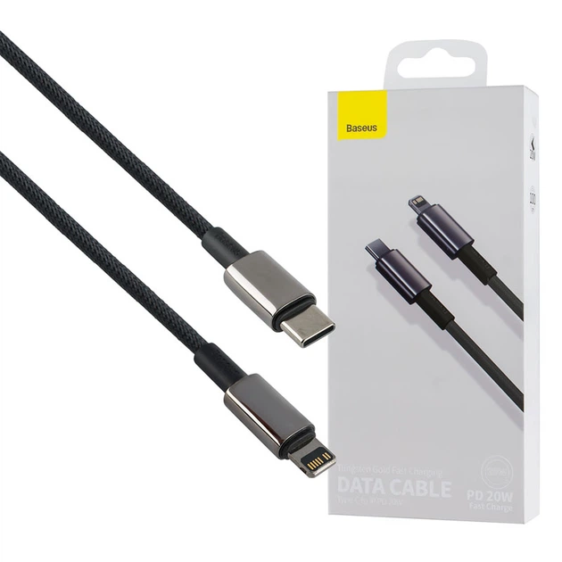 Кабель швидкого заряджання Type-C to Lightning Baseus Tungsten Gold PD 20W Fast Charge 1m, чорний (CATLWJ-01)
