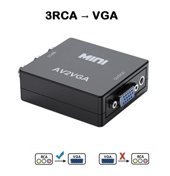 Конвертер AV2VGA перехідник 3 RCA тюльпан на VGA Black