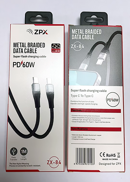 Кабель в оплітці ZPX ZX-84 Type-C Type-C підтримка швидкої зарядки PD 60W довжина 1 метр нейлон алюмінієвий сплав