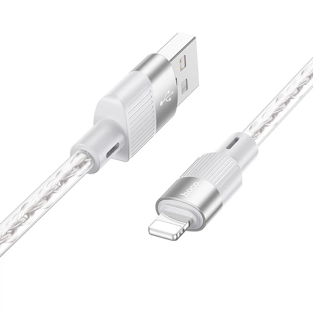 Кабель заряджання Hoco X97 Crystal color Silicone USB to Lightning (2.4А)(1M) для iOS пристроїв iPhone/iPad/iPod Білий