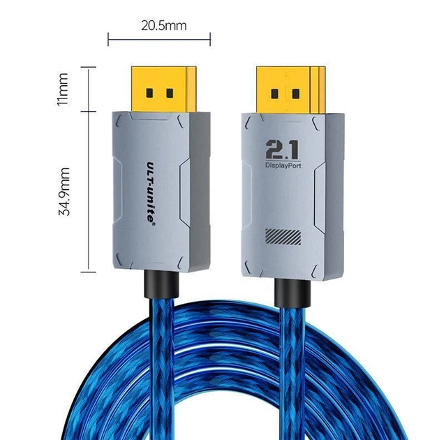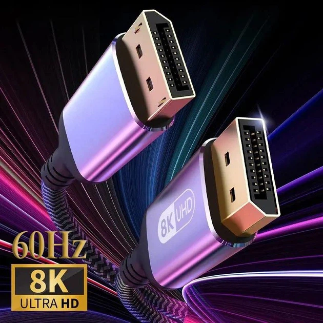 Високошвидкісний DisplayPort 2.1 кабель довжиною 1 м., роздільна здатність16K@60Hz, частота оновлення 4К та 8К, алюмінієвий