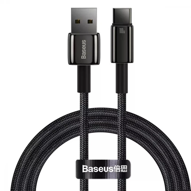 Кабель Baseus Tungsten Gold Fast Charging Data Cable USB to Type-C 100W 20V 5A 1m Чорний (CAWJ000001)