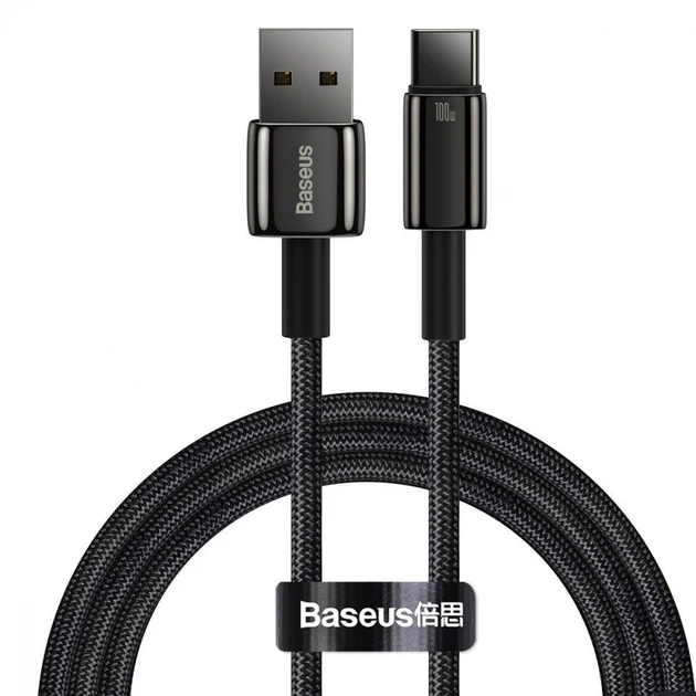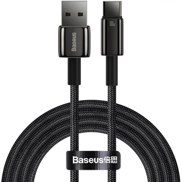 Кабель Baseus Tungsten Gold Fast Charging Data Cable USB to Type-C 100W 20V 5A 2м (CAWJ000101) Black