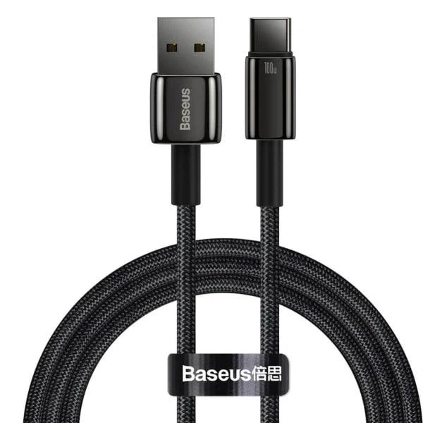 Кабель Baseus Tungsten Gold Fast Charging Data Cable USB to Type-C 100W 20V 5A 1м (CAWJ000001) Black