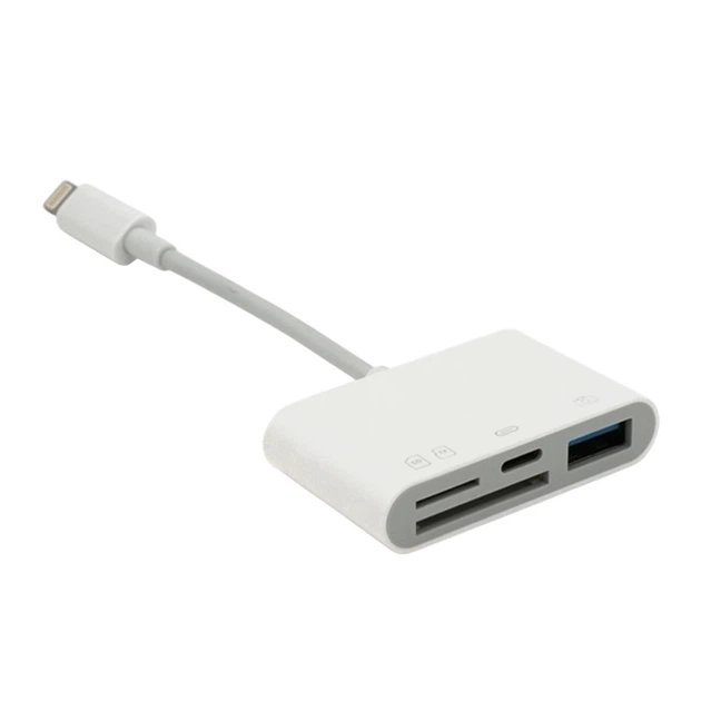 Перехідник адаптер 4в1 кардридер 8Pin JH-0512 для IPhone/IPad Lightning на TF/SD/Type-C/USB3.0 White
