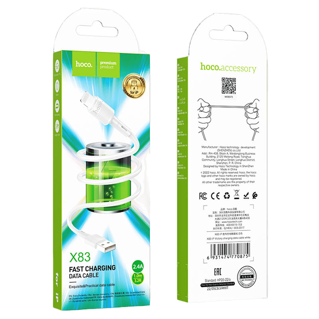 Кабель HOCO X83 Victory USB - Lightning (2.4A) (1M) Білий
