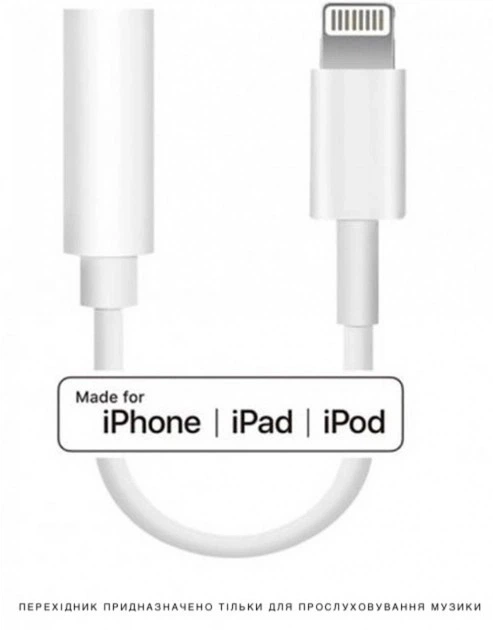 Перехідник адаптер Lightning to 3.5 mm для Apple Iphone iPod iPad 1 White