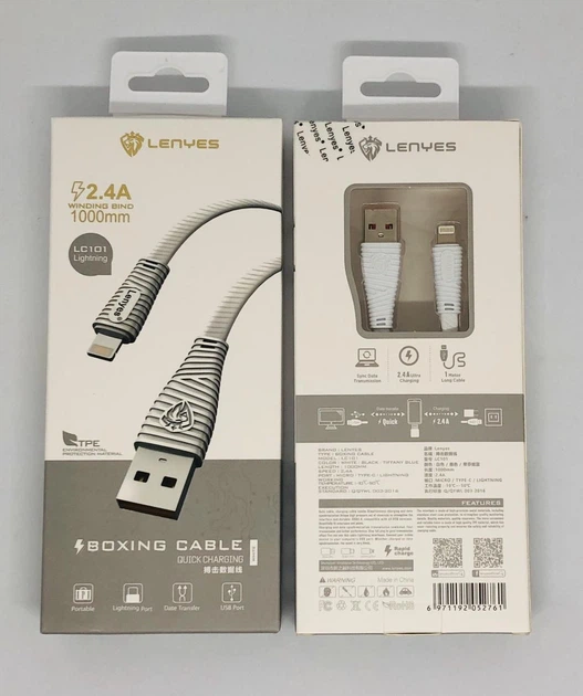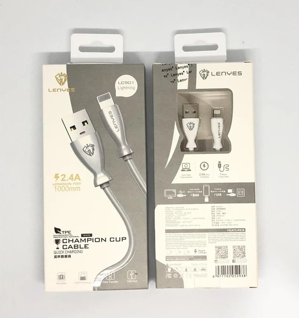 Кабель Lenyes LC901 USB-Lighting 2.4A White довжина 1м BOX