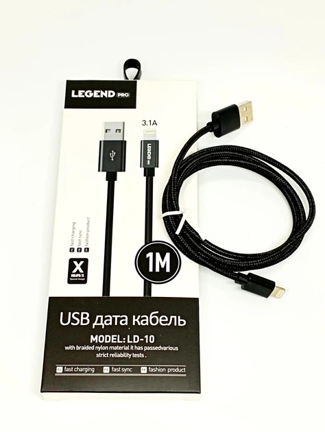 Кабель LEGEND PRO LD10 Lightning 1м 3.1A (Чорний)
