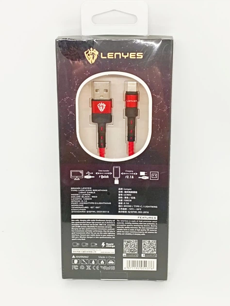 Кабель LENYES LC938 Lightning 1м 2.1A