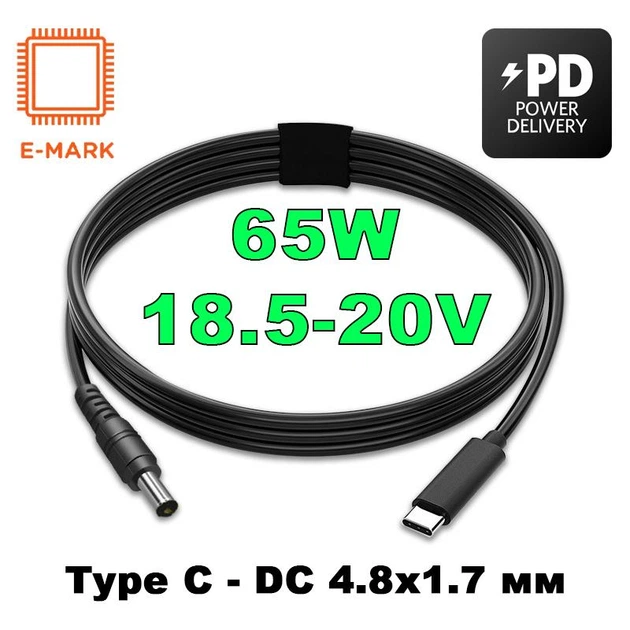 Кабель-перехідник PD 65W Type-C на DC 4.8x1.7 на 18.5-20V вольт 1.5 м для заряджання ноутбука Asus HP з тригером (1.5 метри)