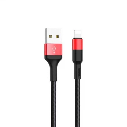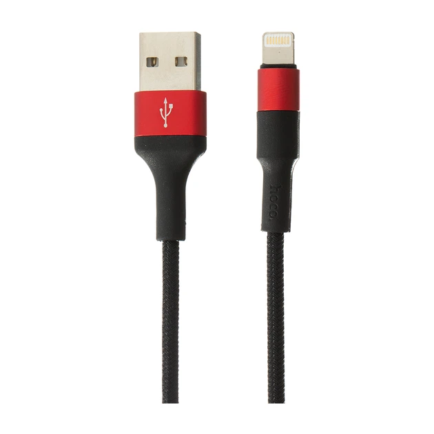 Кабель Hoco Xpress X26 Charging Lightning чорно-червоний 1 метр 2А (тканинний оплет, метал. коннект.)