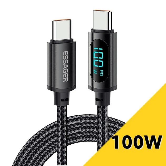 Універсальний кабель Toocki Power Display Type-C to Type-C 100W (2.0m) black