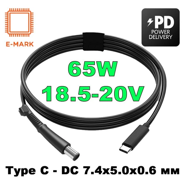 Кабель-перехідник PD 65W Type-C на DC 7.4x5.0x0.6 на 18.5-20V вольт 1.5 м для заряджання ноутбука Dell з тригером (1.5 метри