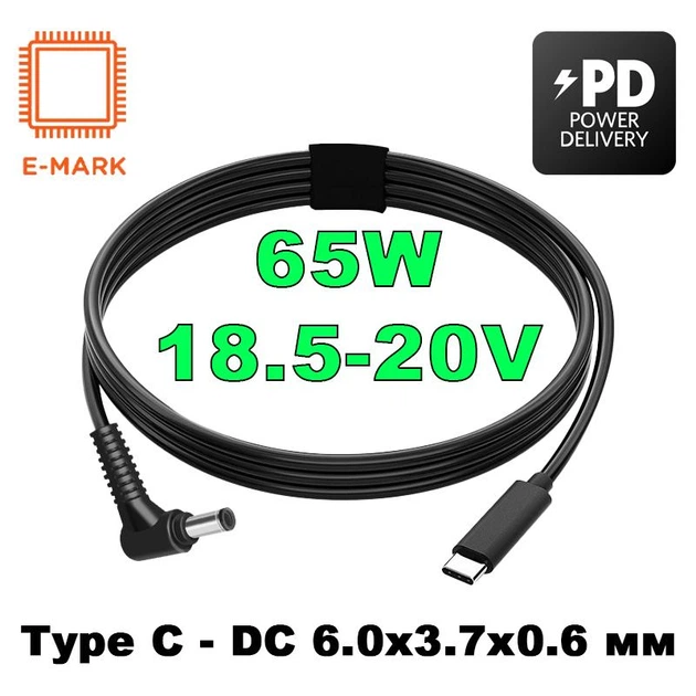 Кабель-перехідник PD 65W Type-C на DC 6.0x3.7x0.6 на 20V вольт 1.5 м для заряджання ноутбука Asus з тригером (1.5 метри) Pow