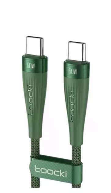 Кабель Toocki Type-C to Type-C PD60W 1.0м, кабель для швидкого заряджання та передачі даних, Зелений