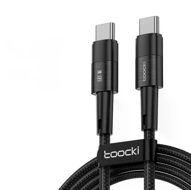 Кабель Toocki PD60W Type-C to Type-C 1м, для заряджання ноутбука та телефону, Чорний