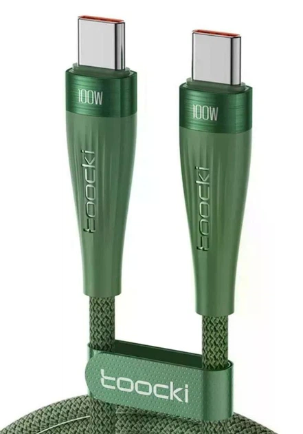 Кабель Toocki Type-C to Type-C PD100W 2.0м Зелений, кабель для заряджання та передачі даних