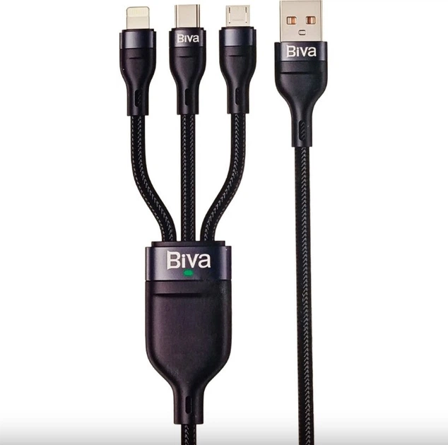 Кабель трикінцевий BIVA C-09 3 in 1 66w 1,2m cable Black