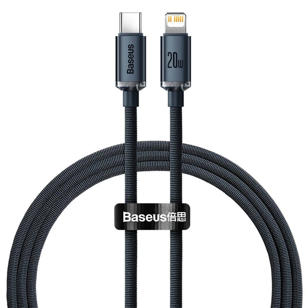 Кабель Baseus Type-C to Lightning Crystal Shine Series Fast Charging Data Cable |2m, 20W| Black