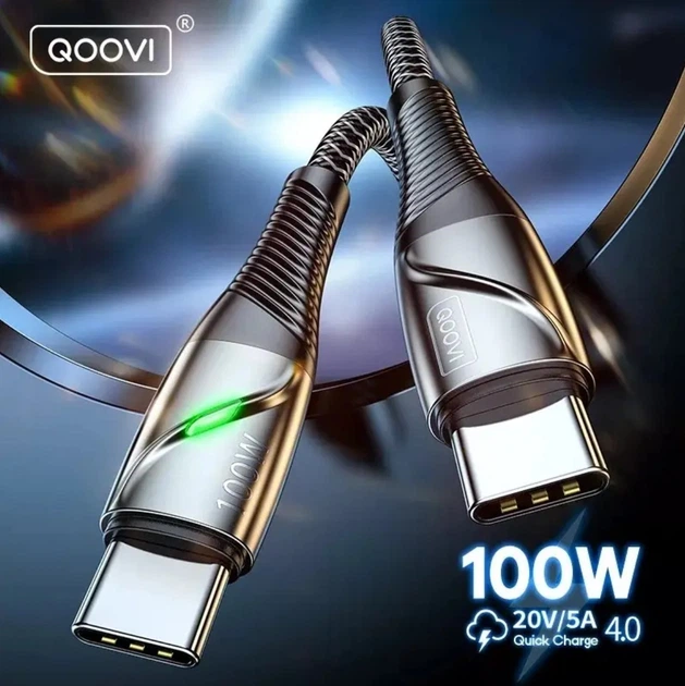 Кабель PD Qoovi Type C 100W 1 м. чорний (670115)