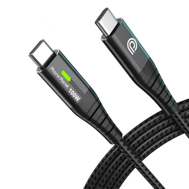 Кабель Phone Planet Type-C to Type-C 100W, 2 м, чорний, тканинне обплетення