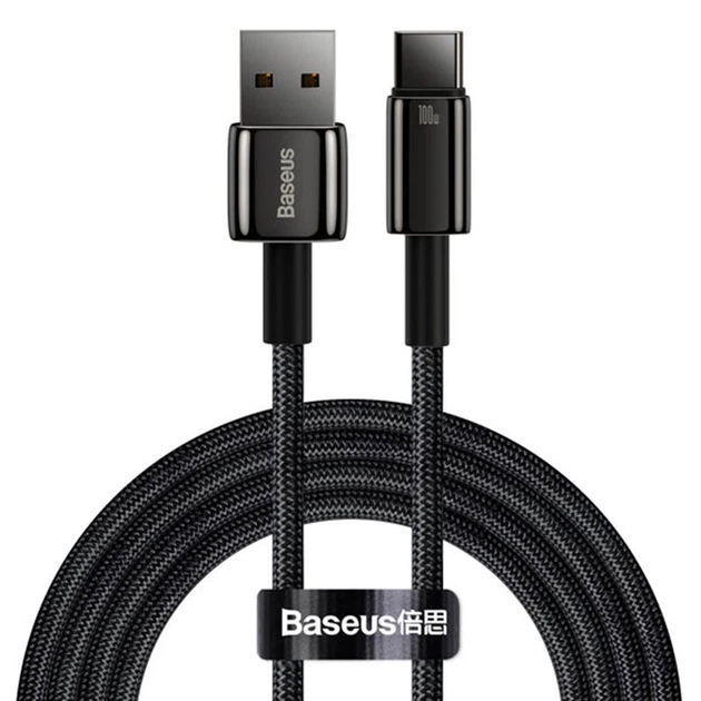 Кабель Baseus Type-C Tungsten Gold Fast Charging Data Cable |2m, 100W| чорний